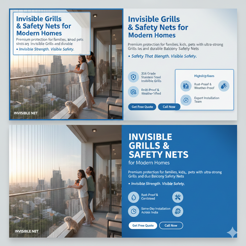 Invisible Net is India’s trusted provider of Invisible Grills, Balcony Safety Nets, Bird Nets, Child Safety Nets & Pet Protection Nets, delivering safe and modern solutions for high-rise homes.